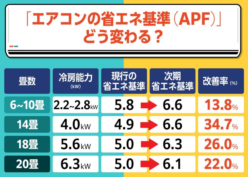 エアコンの省エネ性能が全体的に引き上げられることで、