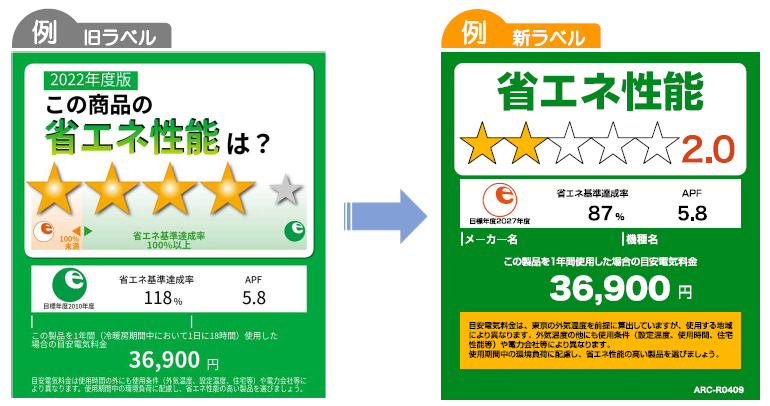 省エネ性能基準APFの見直しに伴い、販売の現場においても表示の仕方が変わっております