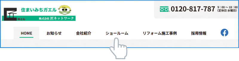 ホームページのトップメニュー、『ショールーム』ボタンより