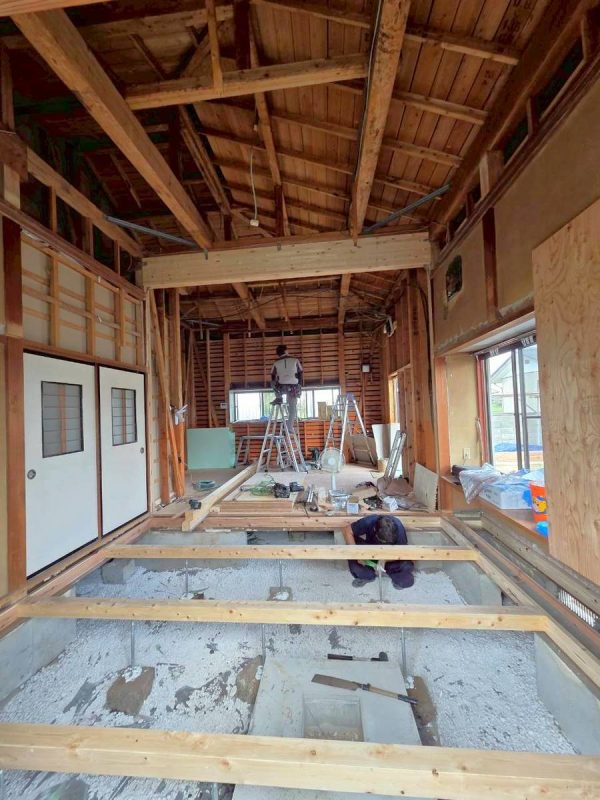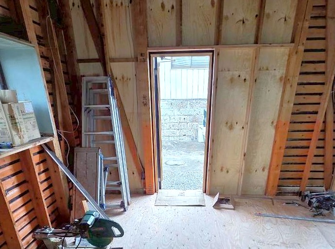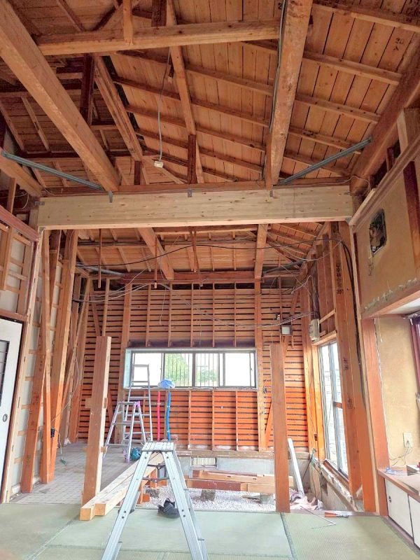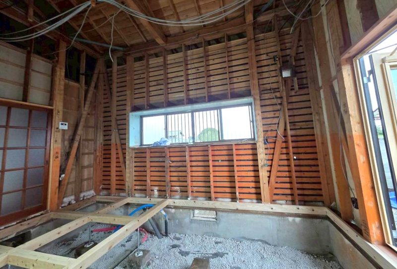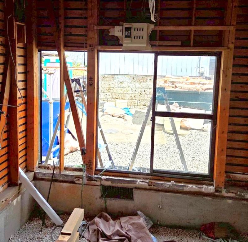 掃出し窓を取り外し、窓開口部の半分は壁を新設し、