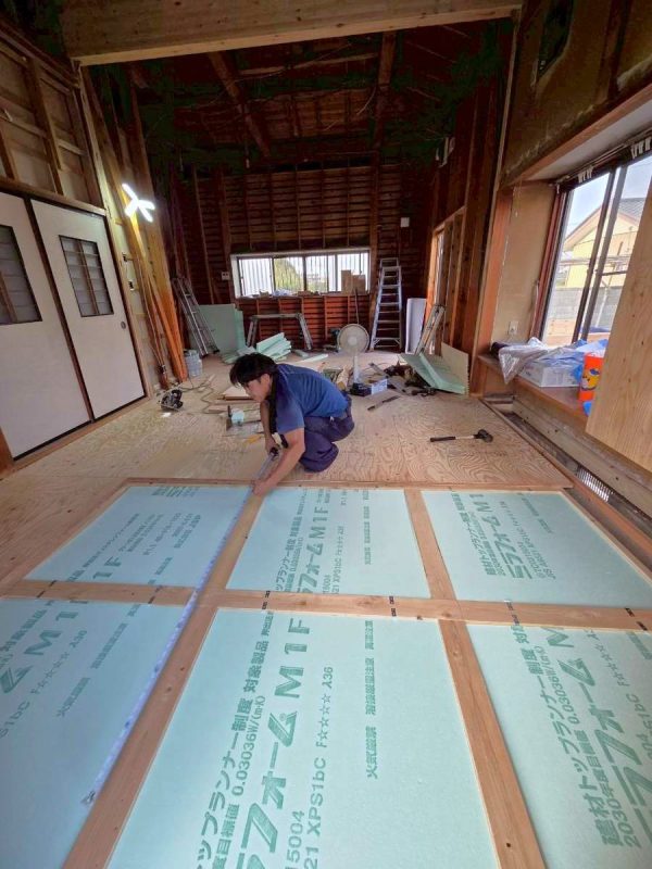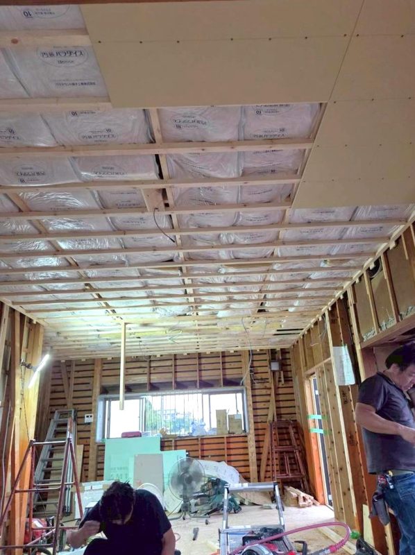 床・天井・壁にはしっかりと断熱材を敷き詰め、下地を仕上げていきます