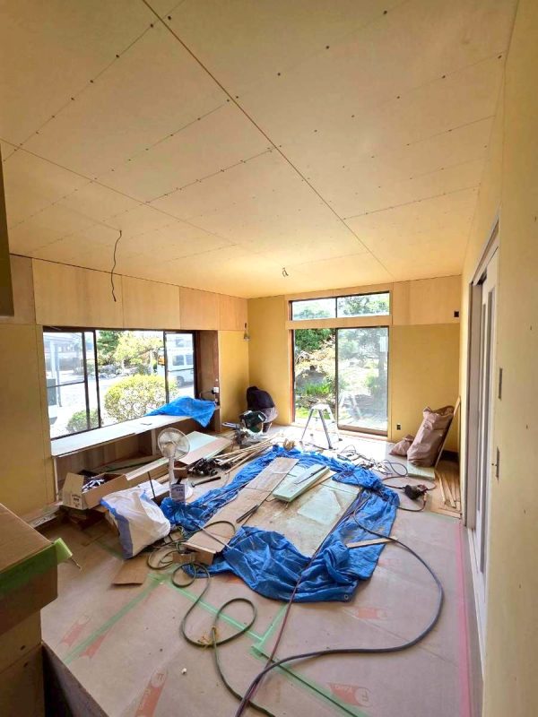 ボードが貼られると輪郭がはっきりとし、部屋の形が見えてきます