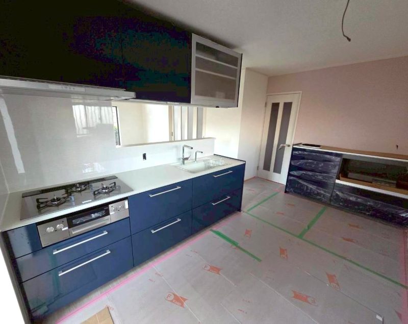 壁付けだったキッチンは、リビングを向いた対面型の新しいキッチンが設置されました