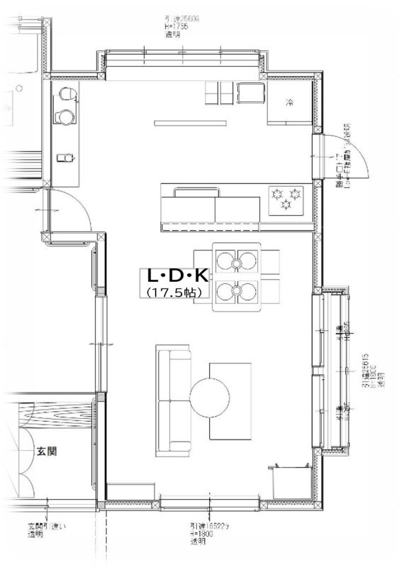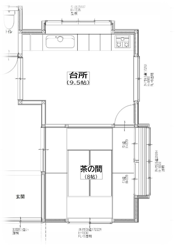 台所と茶の間の二間を、LDKとして一つの空間にするため、