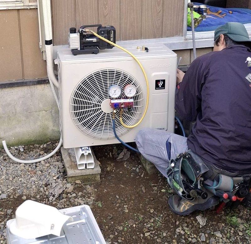 エアコン取付時は室外機からのガス漏れチェックをして確認します