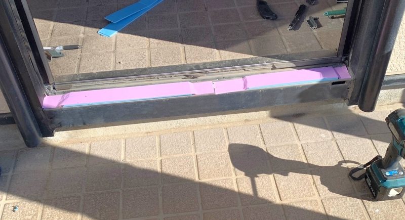 今回は、既存のドア枠を残して活用する『カバー工法』という方法で改修工事を行います