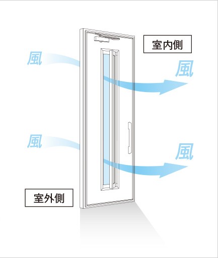 ドア中央のガラス部分は通風のために開閉できる仕様になっております