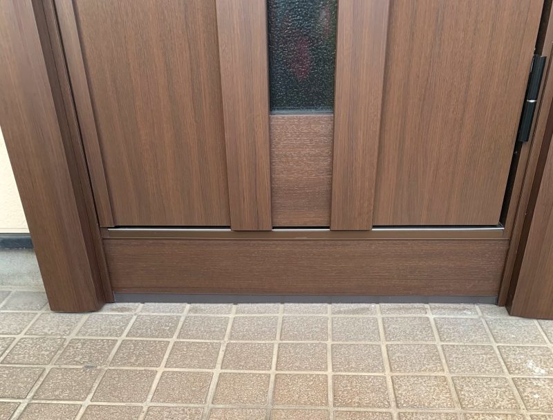 玄関ポーチタイルから玄関ドアの枠までは間があいており、