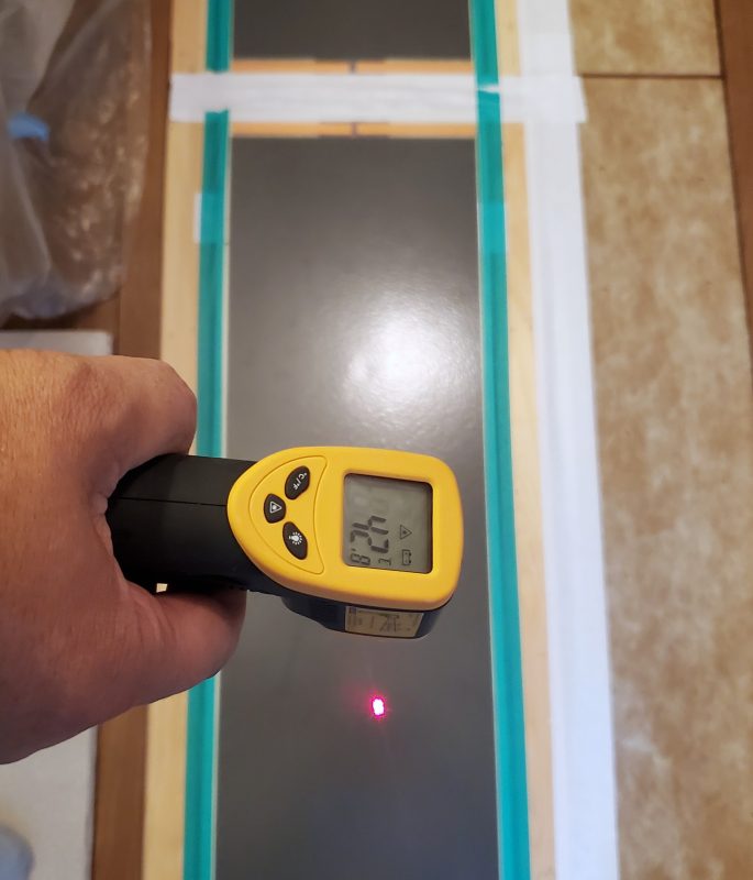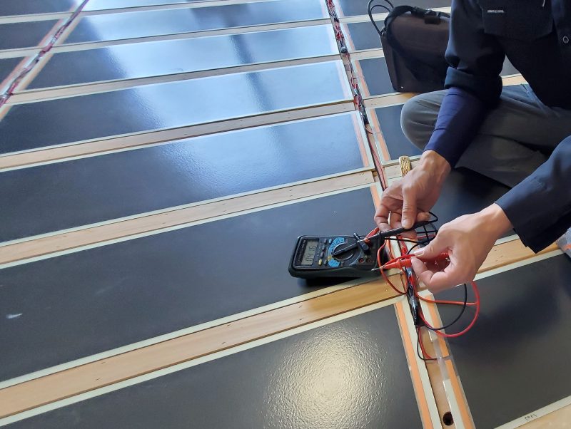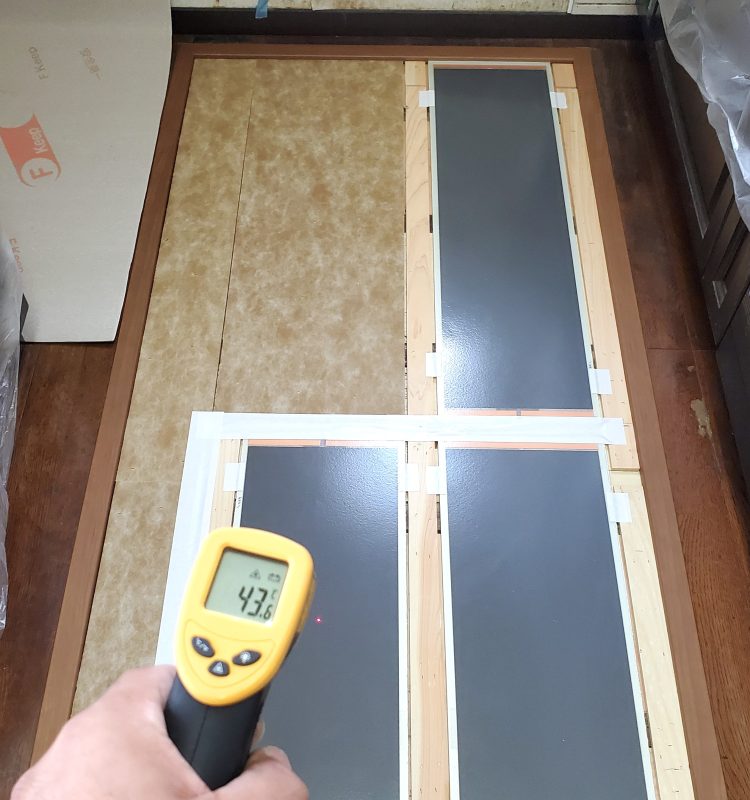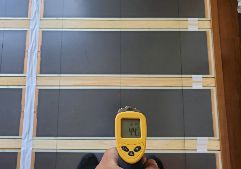 平らに仕上げて、全ての遠赤外線シートが暖かくなっているかサーモメーターでチェックします