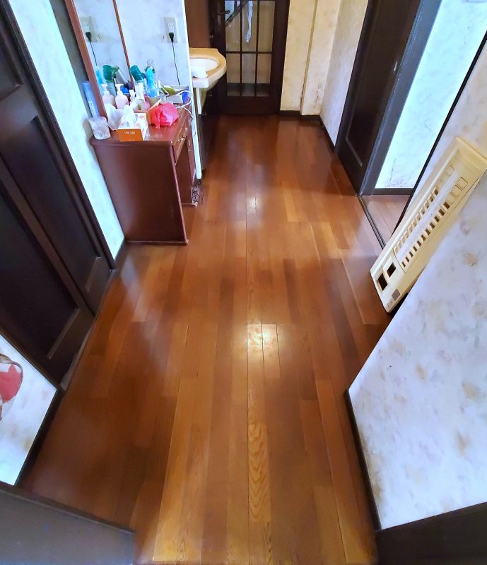 新しい床暖房用のフローリングを張り、キッチン・洗面化粧室も完成です