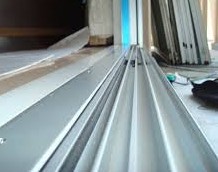 床(敷居)に、扉がスライドするためのレールを取り付け、戸車が付いた扉で開閉するレール式の方法と、