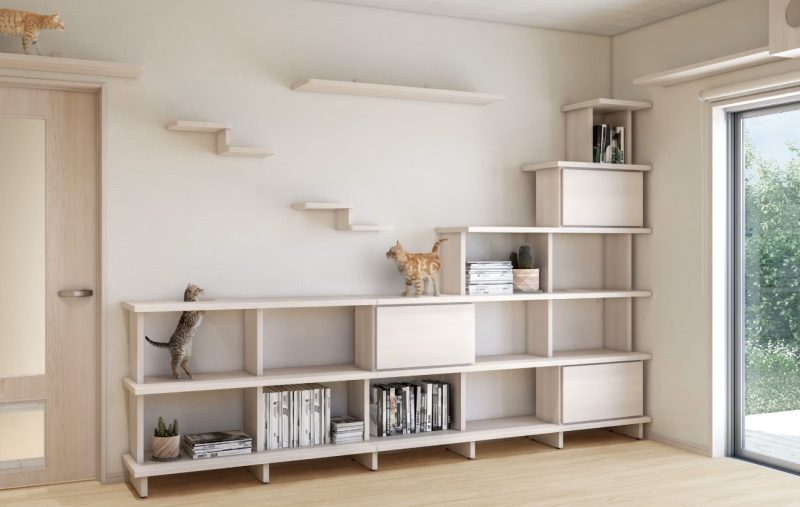 DAIKEN(ダイケン)のシステム収納シリーズには猫の移動ルートと収納を両立した、